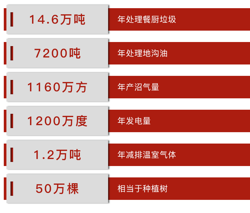 西安市餐厨垃圾处理项目作为国家第四批试点城市项目,在市委、市政府的正确领导、各级领导干部职工和参建单位共同努力下二期项目顺利投产。标志着西安市餐厨垃圾处理一、二期项目全面投产运行。二期满负荷投产后,年均处理餐厨垃圾约14.6万吨,地沟油约7200吨,年产沼量约1160万方,年发电量约1200万度,年减排温室气体约1.2万吨,相当于种植50万棵树。
