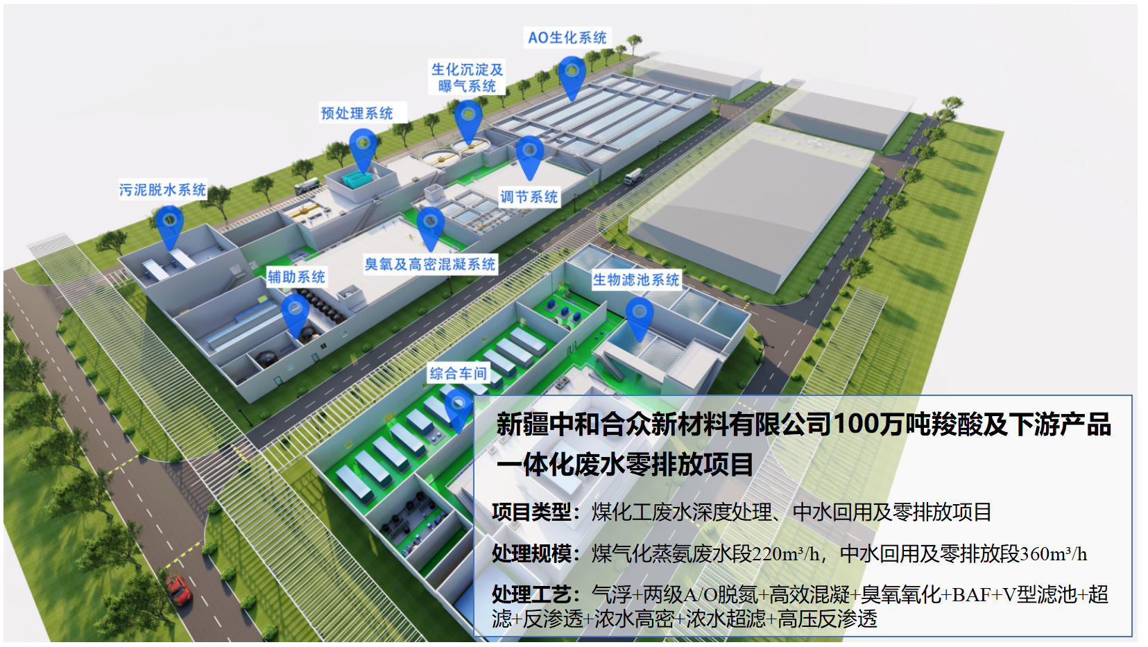 近日,维尔利集团成功签署了新疆中和合众新材料有限公司100万吨羧酸及下游产品一体化废水零排放项目。该项目涉及煤气化蒸氨废水处理和中水回用及零排放处理。煤气化蒸氨废水段的设计处理能力为220m³/h,中水回用及零排放段的设计处理能力为360m³/h。产水水质满足《城市污水再生利用-工业用水水质》(GB/T 19923-2005)中锅炉补给水水质标准。